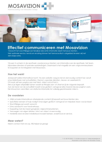 Het narrowcasting systeem van Mosavizion heeft verschillende voordelen voor jouw apotheek